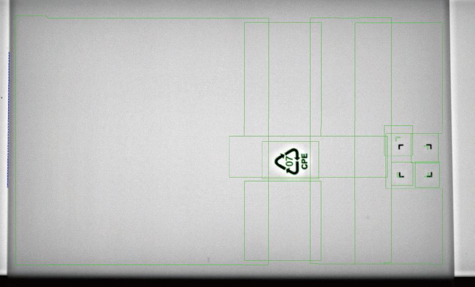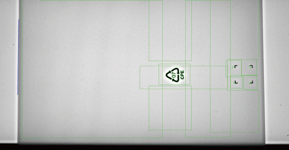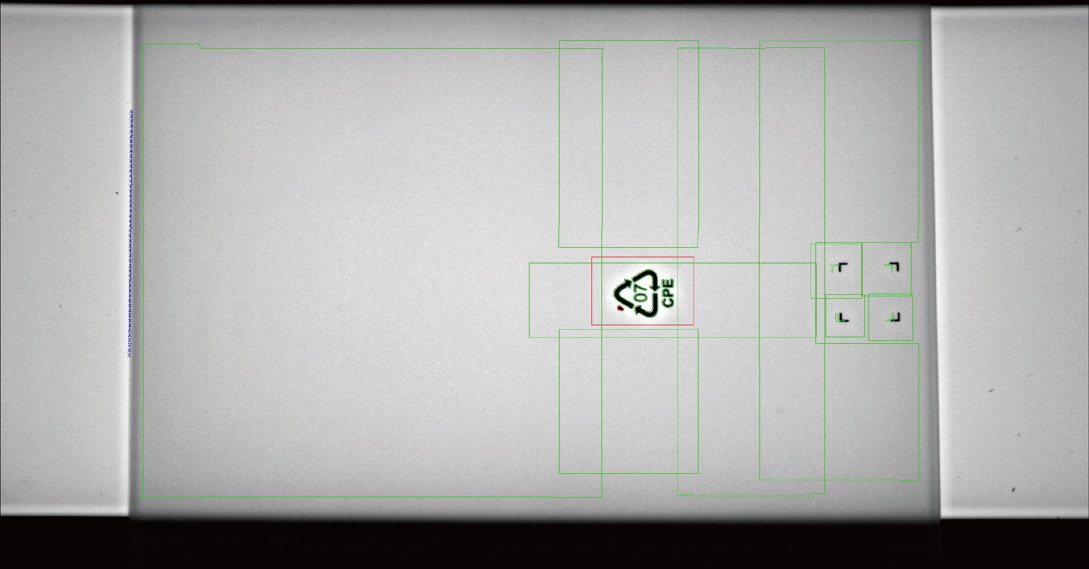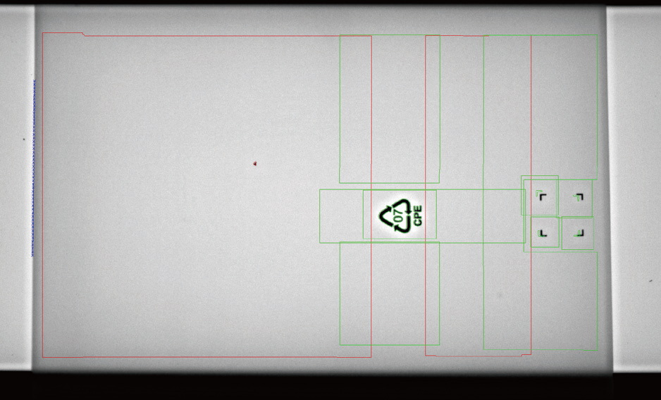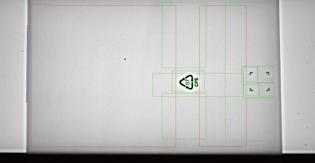 檢測要求:在線連續檢測薄膜袋上有無臟點,蚊子等類似臟污。需要避開絲印位置。